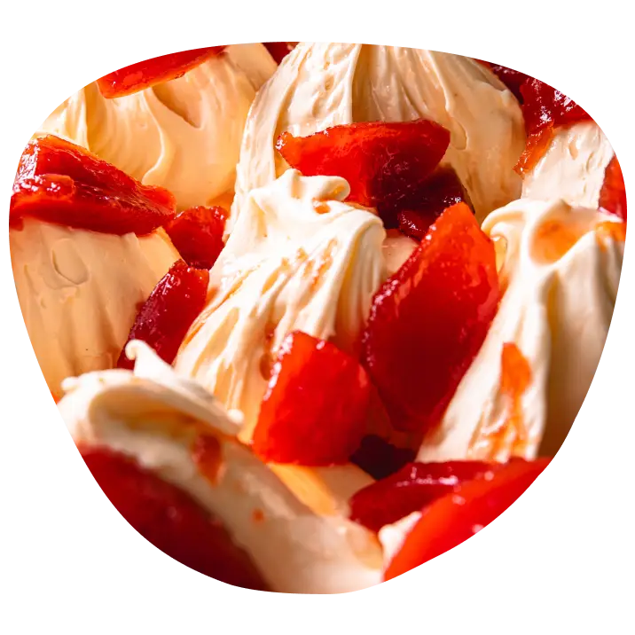 Helado de mascarpone con frutas de estación